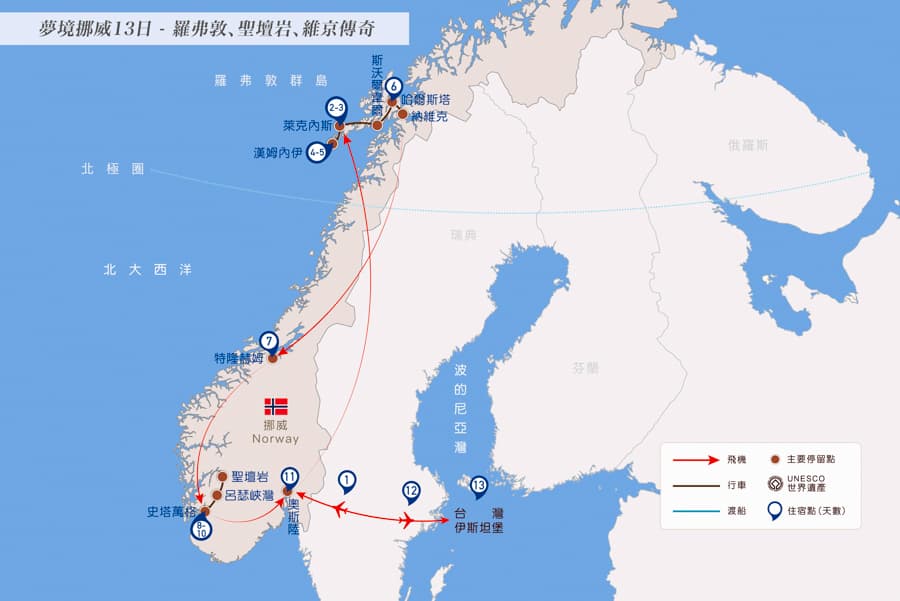 減少奔波、增加停留。透過四段航班、聖壇岩與峽灣雙體驗、羅弗敦深度停留提升旅程品質。